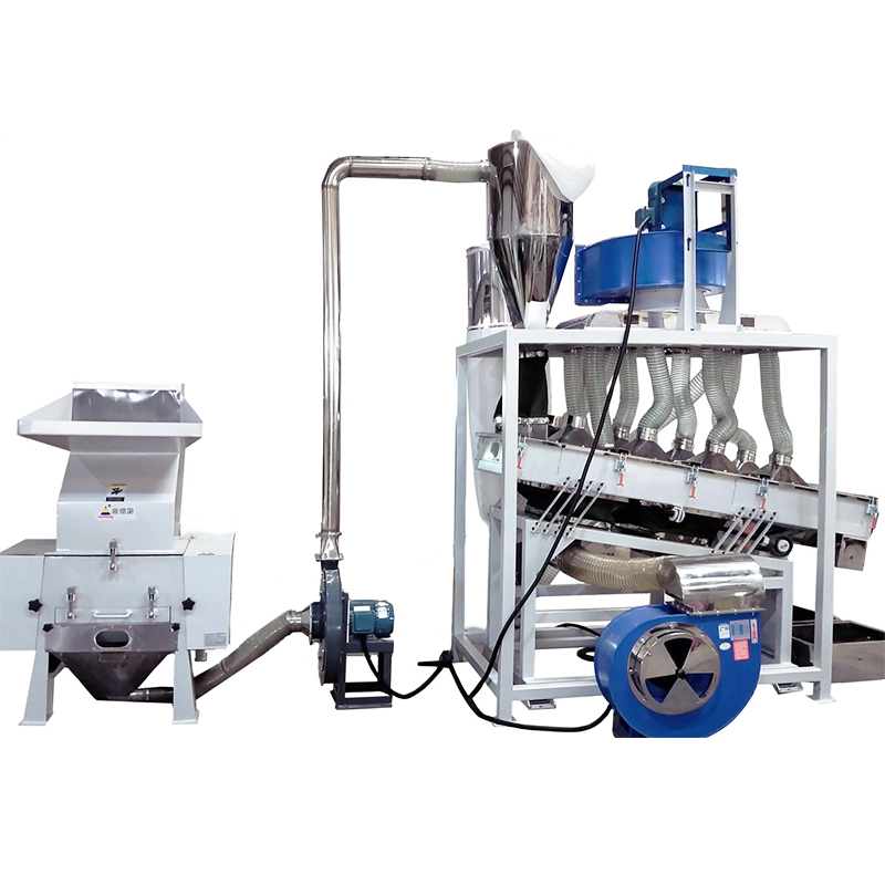 利用不同物料比重的差異,輕的物料(如灰塵、頭發(fā)絲、標(biāo)簽紙、纖維、薄膜等)被抽走,重的物料從底部排出,并經(jīng)不同的管道分別送入存儲(chǔ)器打包。